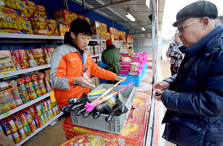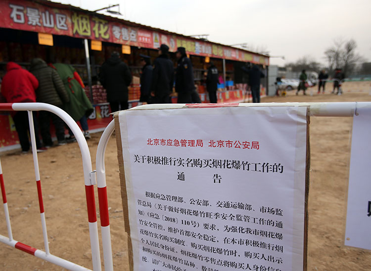1月30日,农历腊月二十五,猪年烟花爆竹在京城五环外全线开卖。与往年相比,今年的花炮销售首次启用实名制。京城烟花爆竹零售点从去年的80多个减少到37个,除了在本市五环路以内(含五环路)不设置零售点外,副中心也首次列入到不设置花炮网点的区域里。据悉,猪年春节,花炮销售时间为1月30日至2月9日(农历腊月廿五至正月初五)。猪年春节烟花在以往“电子标签”模式基础上,新增“实名制购买”模式,每个销售网点均配备了1-3台身份证核验设备,每个花炮产品的产地、药含量、出入库时间、“最终去向”等所有信息全程可追溯。