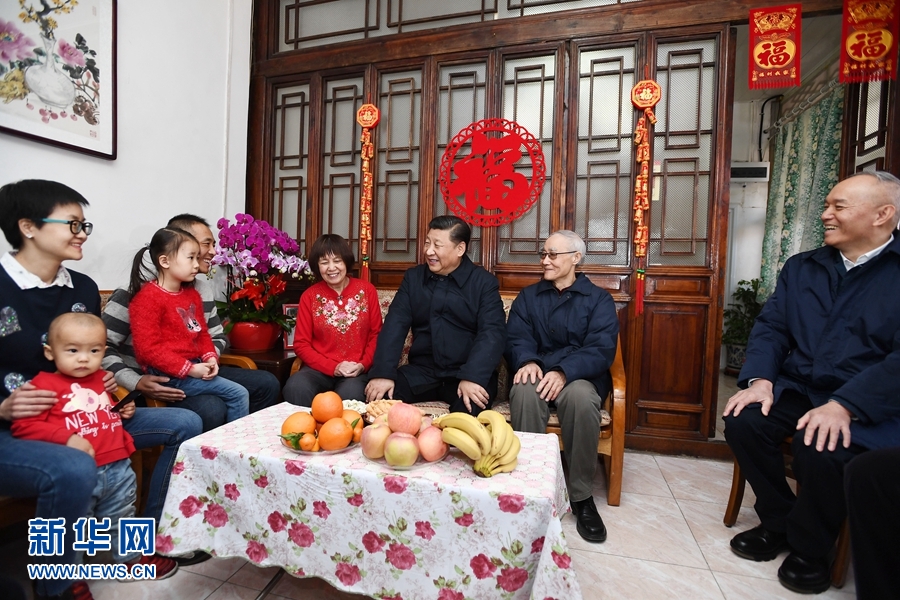 中华民族传统节日农历春节来临之际,中共中央总书记、国家主席、中央军委主席习近平在北京看望慰问基层干部群众,向全国各族人民致以美好的新春祝福。这是2月1日上午,习近平来到北京前门东区,走进居民家中看望慰问,了解居民生活情况。 新华社记者 谢环驰 摄