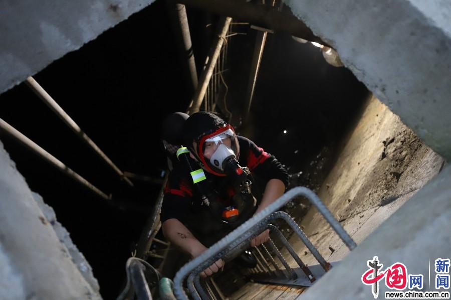 要通过铁制爬梯,下到15米深的排污井。(中国网发 肖尧/摄)