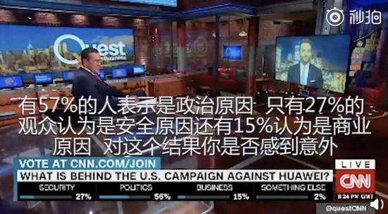 在CNN节目中,现场连线的嘉宾罗伯特听到结果后表示,观众真的像我们想的一样聪明。至于那些选择商业原因的,如果大家认为特朗普这样做是为了美国公司,那你们可能想错了,因为没有美国公司能替代华为。