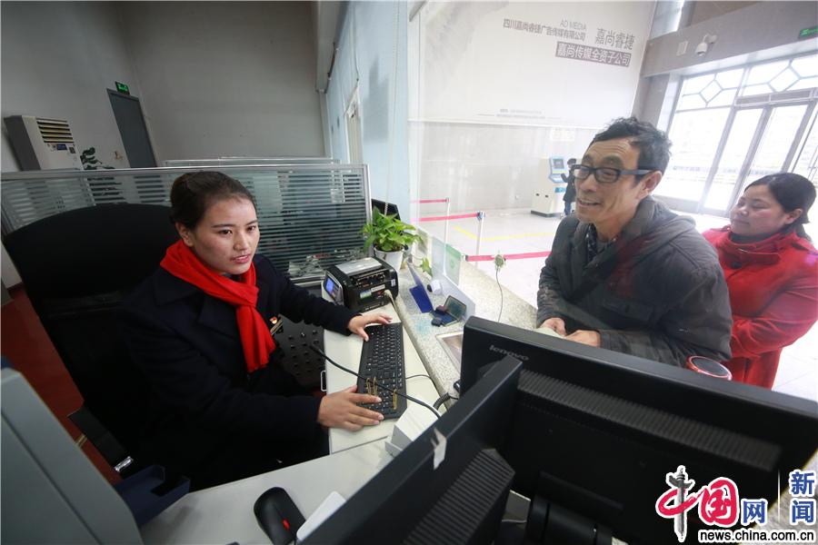 图为藏族客运员仁真那么向旅客出售车票。中国网发 苏志刚/摄