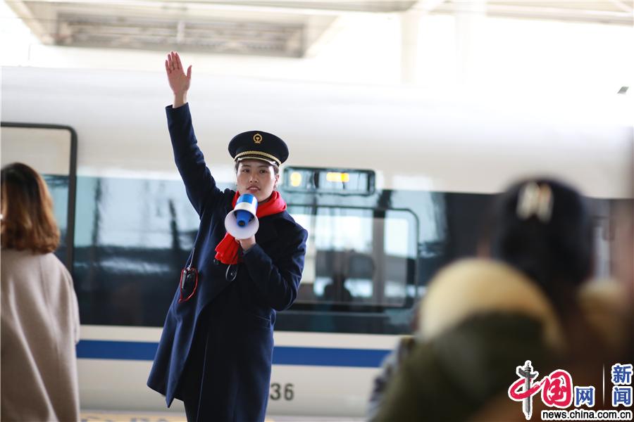 图为藏族客运员仁真那么引导旅客乘车。中国网发 苏志刚/摄