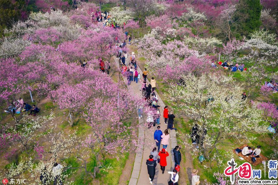 2019年3月10日,游人在南京梅花山踏青赏花。初春三月,南京春光明媚,梅花山花开烂漫,人们纷纷来到户外,踏青赏梅,乐享美好春光。苏阳/东方IC