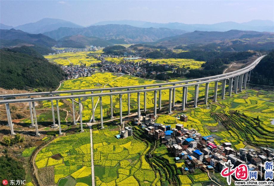 2019年3月10日,在贵州省从江县洛香镇航拍的上皮林油菜花海景色。千龙图像库罗京来/东方IC