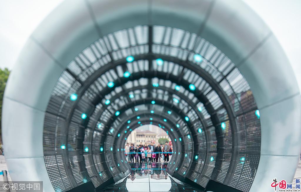 2019年3月24日,重庆,“穿越——影像装置中的洞见”展览,在四川美术学院美术馆广场开展。在这场特别的展览中,交互影像装置《洞见》作为唯一一件展品,以其满满的科技感与艺术感,吸引了许多观众到场体验。乐乐/视觉中国
