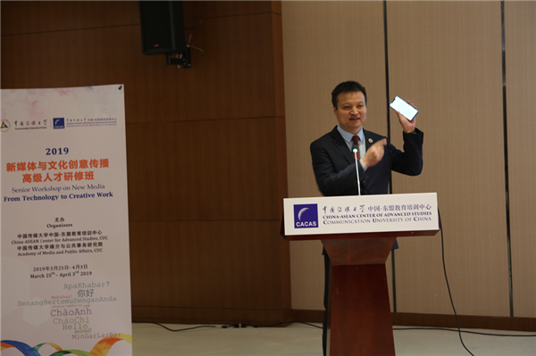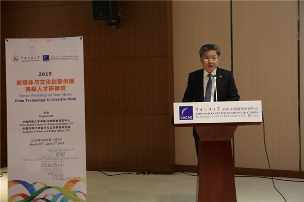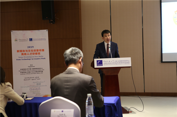 为进一步加强我国与东盟国家在传播领域的互动交流,深化双方在新媒体与文化创意领域的合作,3月26日,由中国传媒大学中国-东盟教育培训中心主办的“新媒体与文化创意传播高级人才研修班”在中传国际交流中心开班,来自东盟10个国家的21名学员参加研讨交流。中国传媒大学媒介与公共事务研究院院长杨宇军主持开班仪式,中国-东盟中心秘书长陈德海、外交部亚洲司信息与公共外交处参赞兼处长张志新致辞。