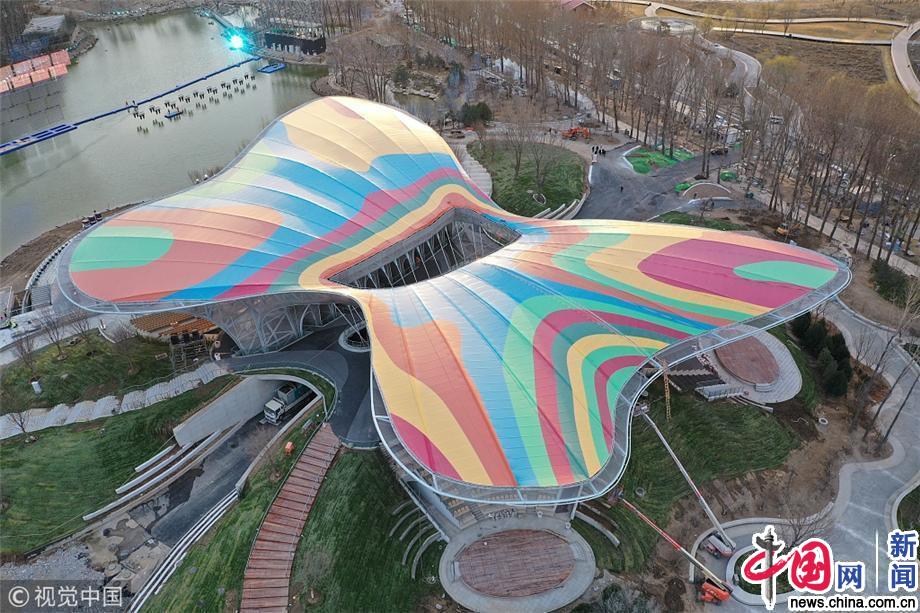2019年03月31日,北京,航拍世园会场馆。2019年中国北京世界园艺博览会是经国际园艺生产者协会批准、国际展览局认可,由中国政府主办、北京市承办的最高级别的世界园艺博览会,于2019年4月29日至2019年10月7日在中国北京市延庆区举行的世界园艺博览会,展期162天。