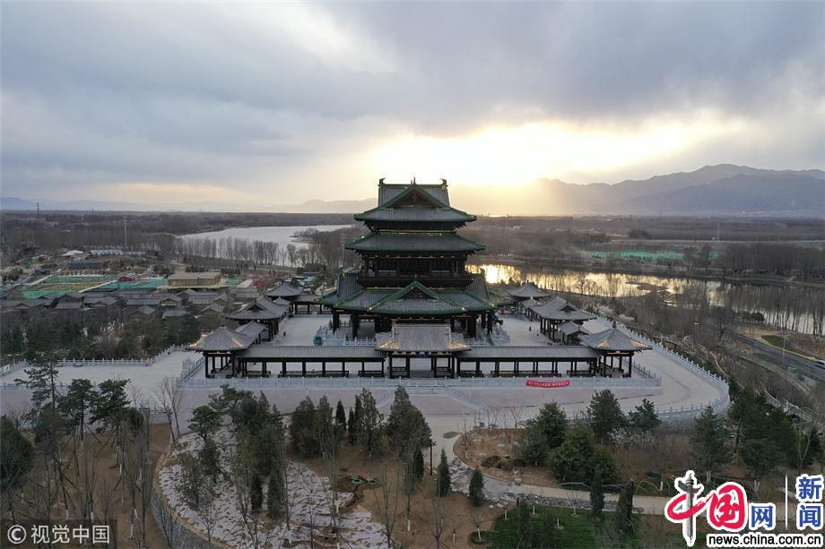 2019年03月31日,北京,航拍世园会场馆永宁阁。2019年中国北京世界园艺博览会是经国际园艺生产者协会批准、国际展览局认可,由中国政府主办、北京市承办的最高级别的世界园艺博览会,于2019年4月29日至2019年10月7日在中国北京市延庆区举行的世界园艺博览会,展期162天。