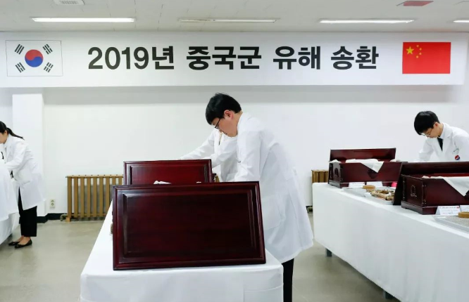 今年1月23日,中韩在北京举行司局级会谈,韩国国防部国际政策官李元翼和中国退役军人事务部褒扬纪念司副司长李桂广均出席,会上商定于4月1日联合举行装殓仪式,4月3日交接遗骸及遗物。双方一致同意有序推进相关事宜,今后韩方将继续向中方移交在韩发掘的中国人民志愿军遗骸。