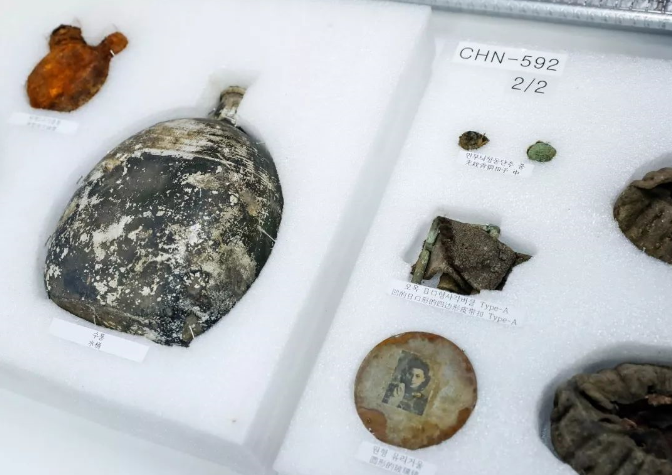 韩国《时事周刊》称,去年11月,韩朝联合发掘朝鲜战争阵亡军人遗骸工作团在江原道铁原郡非军事区箭头高地(即韩军第5步兵师防区)进行公路开通时,发掘出13具军人遗骸,其中一具遗骸比较完整。韩国国防部下属的“遗骸鉴定审议委员会”对遗骸进行识别鉴定,通过综合考虑遗骸发掘地区的战史、解剖学特征、遗物等因素,确认有10具遗骸(包括那具较完整遗骸)是中国军人,同时145件相关遗物也被认定属于志愿军烈士所有,包括个人印章、制式水壶、四边形军用皮带扣、带有家人照片的玻璃镜等。