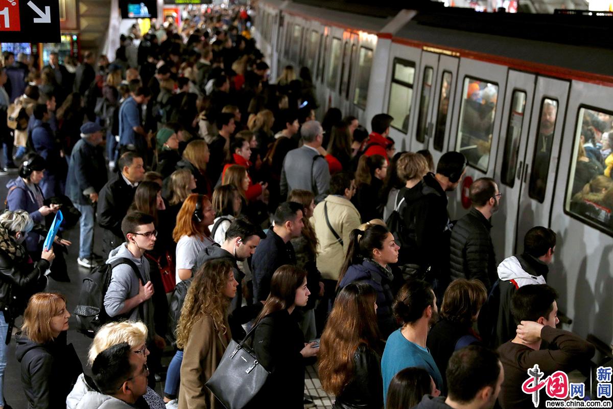 西班牙巴塞罗那地铁工人举行大罢工