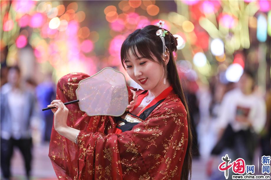 “小姐”“公子”华服出游 西安大唐不夜城穿越古代(   / 6 )