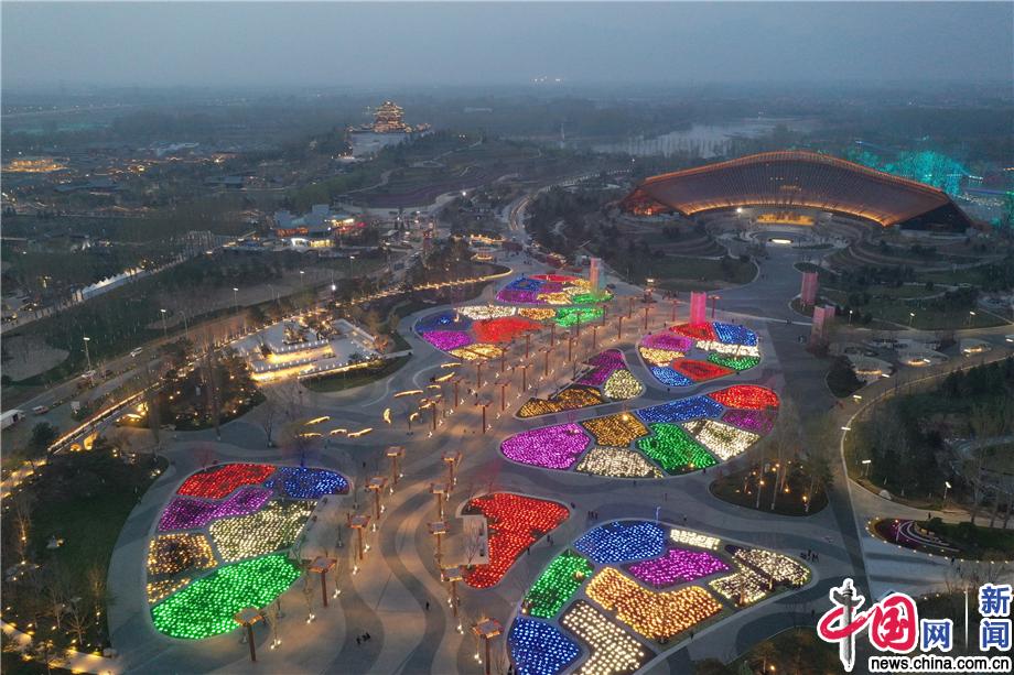 2019年4月16日晚,北京世园会园区正在调试夜景灯光。从空中鸟瞰,灯火璀璨,熠熠生辉。2019中国北京世界园艺博览会将于4月28日开幕,目前园区各项筹备工作已基本完成,进入收官阶段。东方IC/董旭明 来逸晨