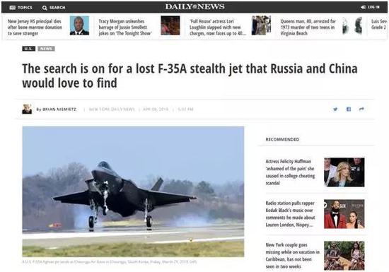《纽约每日新闻报》:对失踪F-35A战机的搜寻正在进行,俄中肯定也想找到。