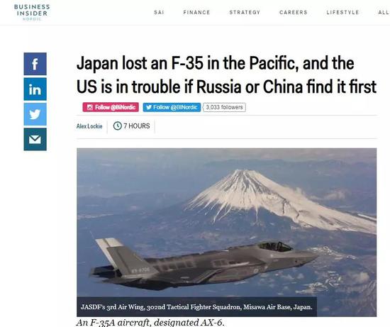 商业内幕:日本在太平洋丢失一架F-35,如果俄罗斯或中国首先找到,美国就有麻烦了。