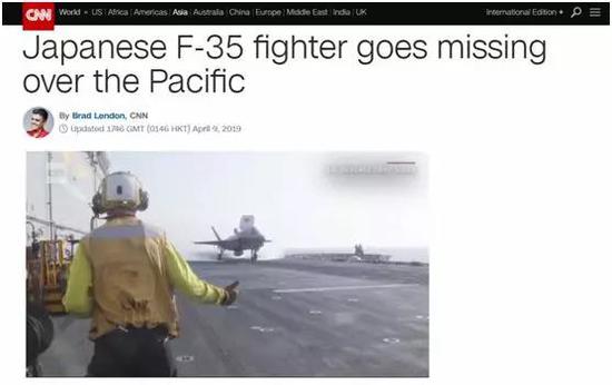 美国有线电视新闻网(CNN)在其首页头条区域位置报道了“日本F-35战机在太平洋上消失”,并且提到,日本航空自卫队第一个F-35中队在出事前11天刚刚成立。