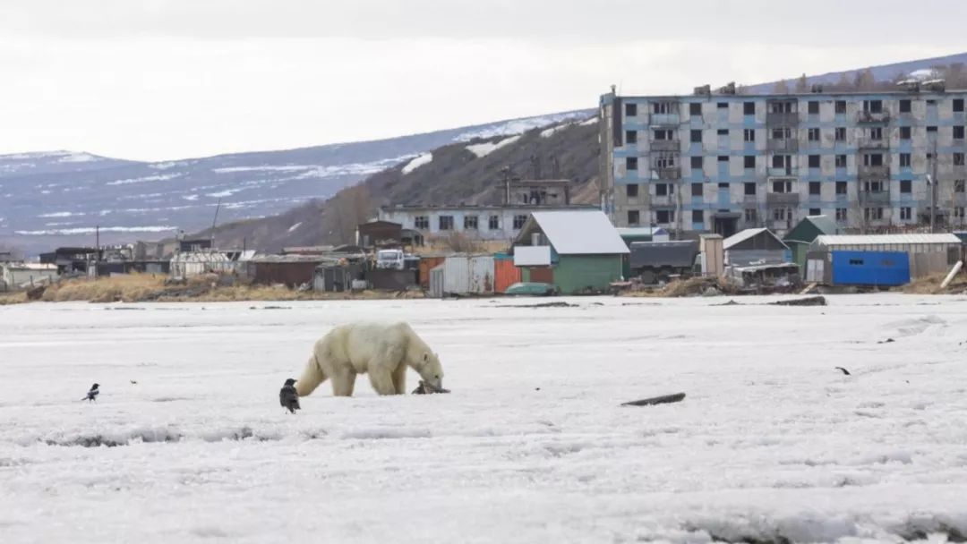 俄罗斯远东小镇季科奇基近日迎来“不速之客”——一只迷路的北极熊。