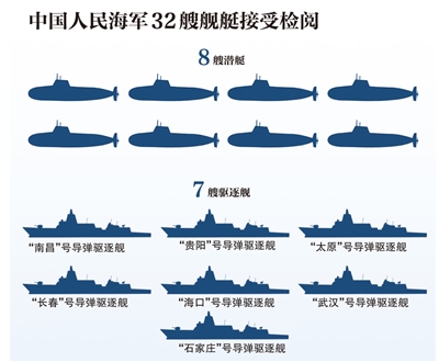 此次接受检阅的舰艇中,最受关注的是辽宁舰航母和“南昌”号导弹驱逐舰。这是辽宁舰继去年南海大阅兵之后,第二次参加阅兵活动,也是南昌舰下水后的首次公开亮相。