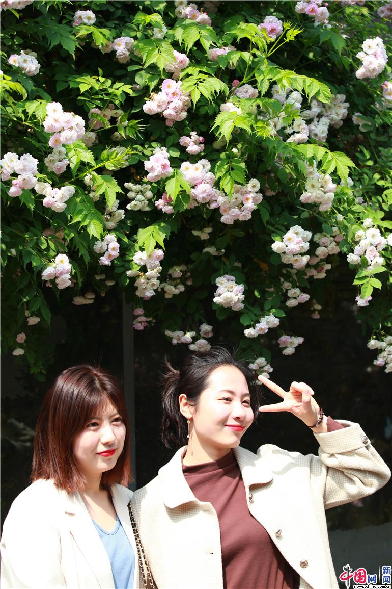 4月27日,江苏省南京市,老门东景区的几处蔷薇花盛开,女孩以花为景拍照。姚家\东方IC
