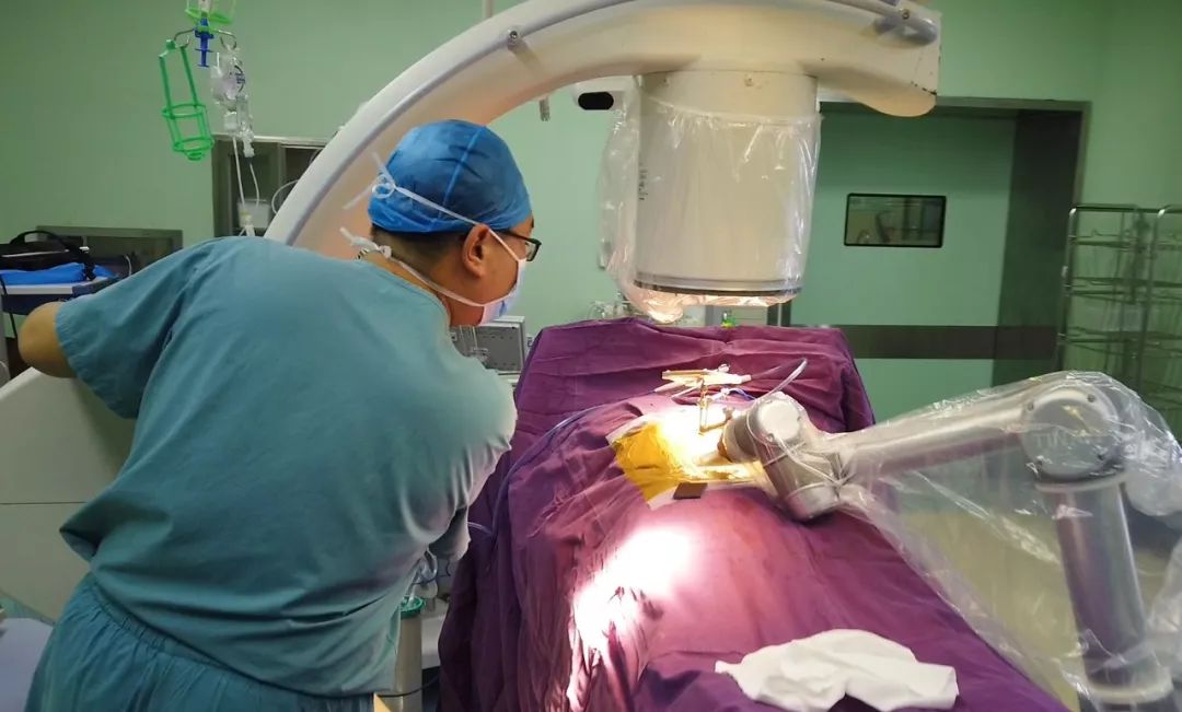 至善楼的一场脊柱手术现场,这双手却与众不同,是一双铁手。