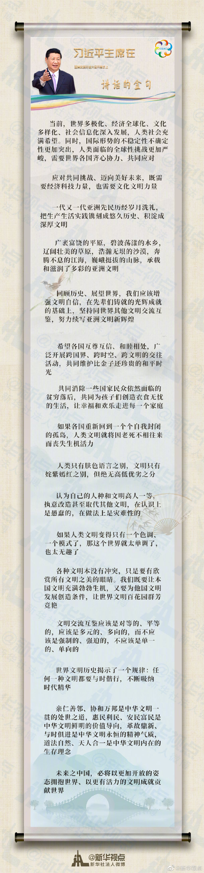 【国家主席习近平在亚洲文明对话大会开幕式上的讲话金句】详情戳图↓