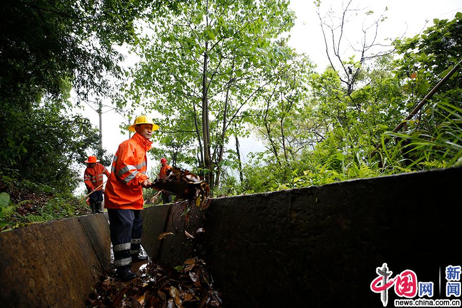 当天的作业是清理天沟,确保汛期排水通畅。中国网发 丁波/摄