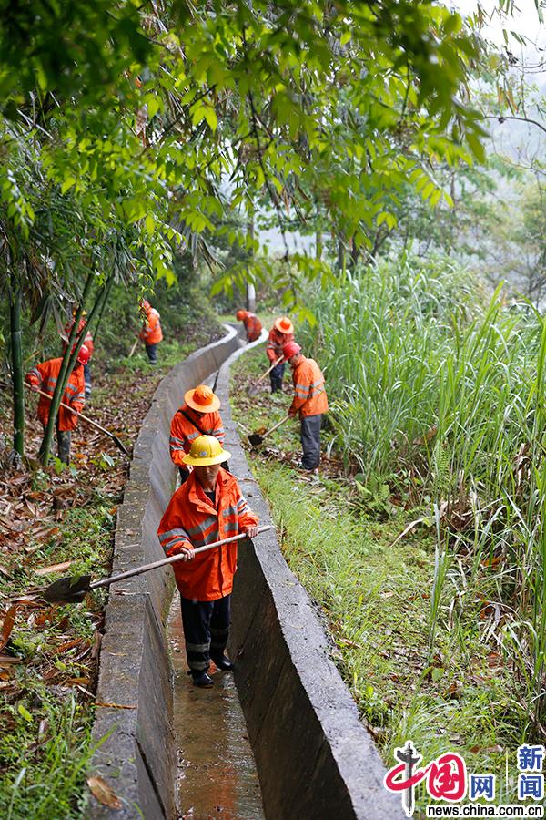 清理天沟需要联劳协作,一次作业要清理300米天沟及周边的灌木杂草。中国网发 丁波/摄