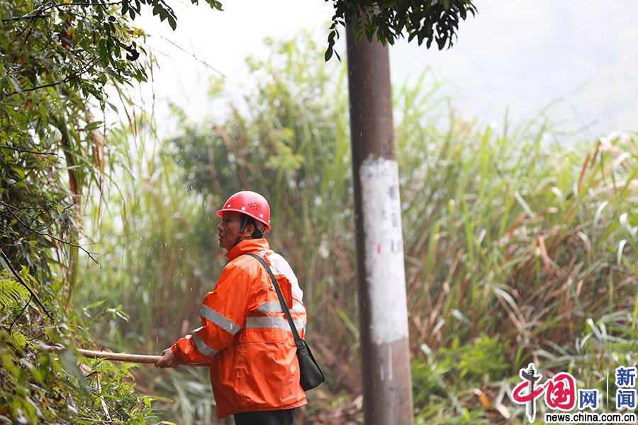 穿着雨衣作业,就算衣服没有被雨水淋湿,闷出的汗水同样能让人“湿身”。中国网发 丁波/摄