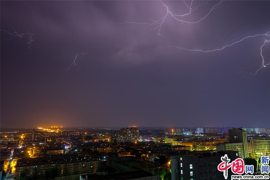 北京夜晚遭遇雷电天气 场面震撼似科幻大片