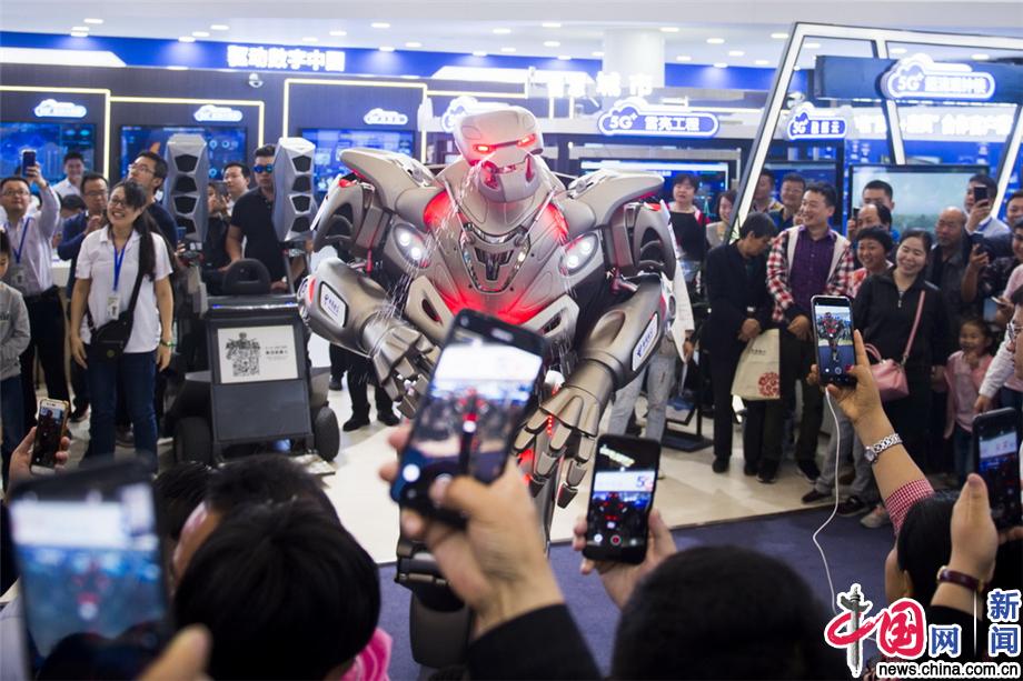 2019年6月2日,5G不仅悄然改变人们的生活,还在科技领域发挥着至关重要的作用。近日,泰坦机器人亮相在西安第四届西洽会现场,它不仅会唱歌,还会跳抖音神曲,时不时甚至自己喷水逗玩观众,吸引了大批观众前来围观。胡聪/东方IC