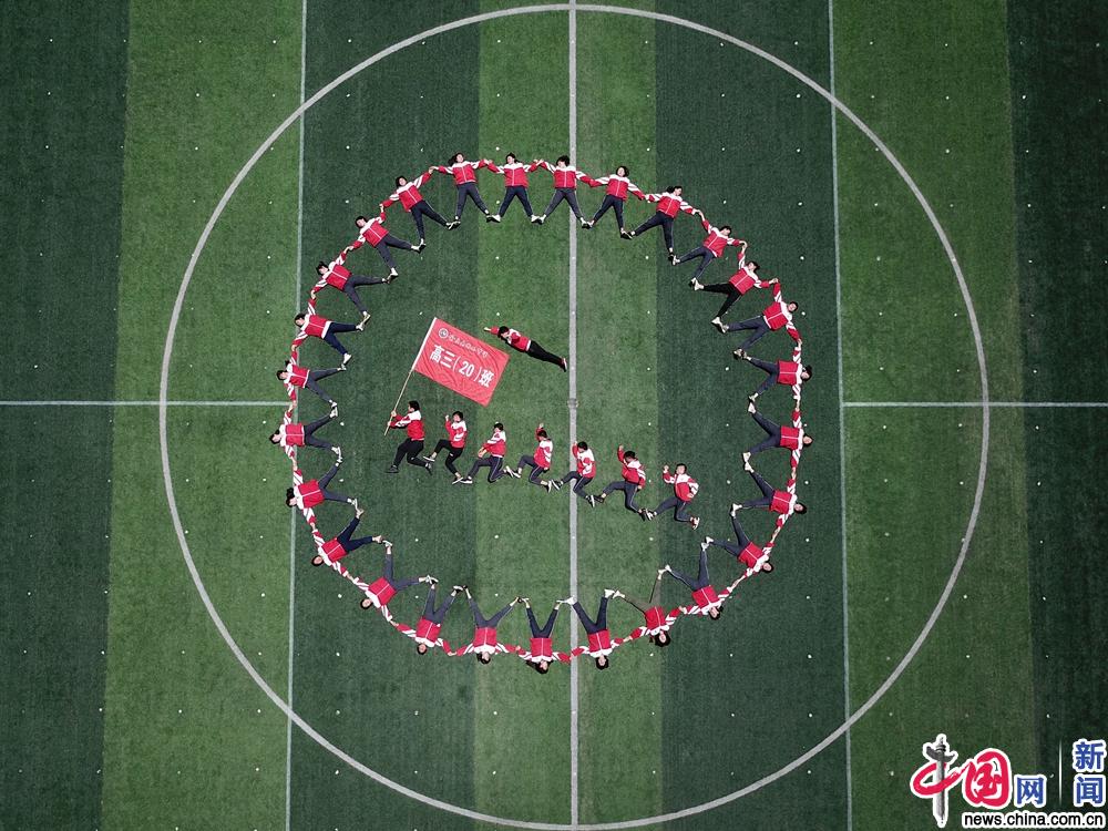 2019年6月3日,高考临近,贵州省遵义市余庆县他山中学高三年级各班通过航拍毕业照、趣味游戏和集体运动等形式各异的“减压”活动,让高三学生在紧张备考之余,通过适当活动放松心情,轻装上阵迎接高考。(贺春雨 摄)