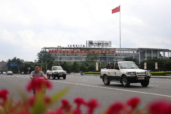 6月7日,端午小长假第一天,武警广西总队贵港支队官兵采取乘车和徒步巡逻的方式,与公安特警一同对贵港市区主干道 、学校周边以及人口密集区进行全天候立体化巡逻。(王俞、孙跃摄影报道)