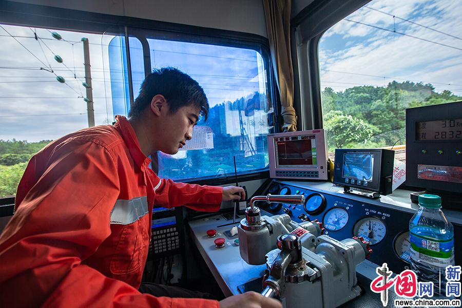 在调度的一声令下,轨道车司机薛子超启动了轨道车!中国网发 徐斌/摄