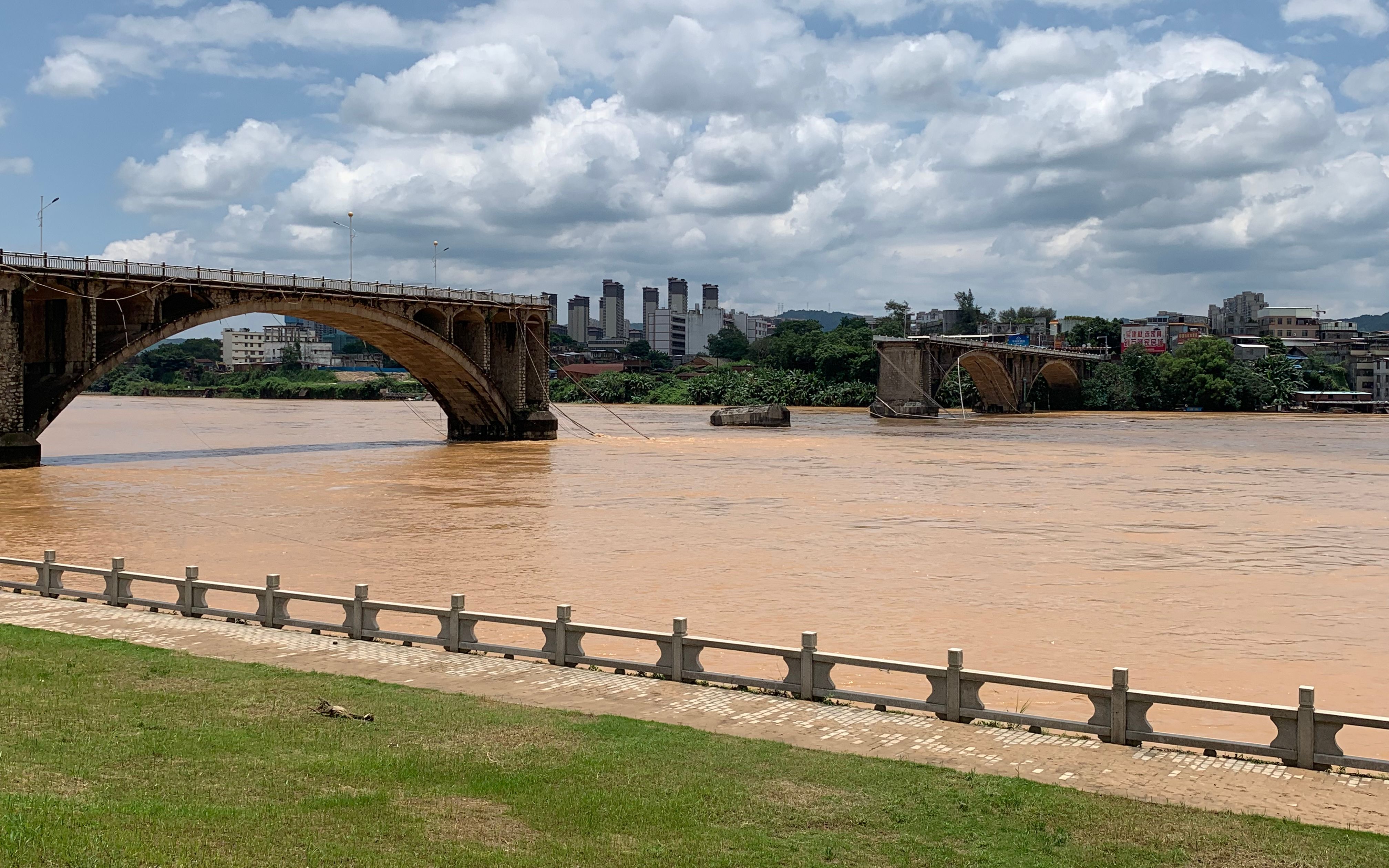 最新消息显示,垮塌位置为左岸第3、4两个副孔(第2孔为通航孔,航道等级以此桥为界:上游为7级,下游为5级)。经初步核查,其中车牌号为粤P6T708的车上包括司机共2人,司机邝某(男,44岁,源城区源南镇风光村人,是一名滴滴车司机)已获救,乘客下落不明;另一辆白色陆地巡洋舰霸道小车,车牌号为粤P0M079,车内司机1人,无乘客,司机卢某(男,45岁,江东新区临江镇人),下落不明。