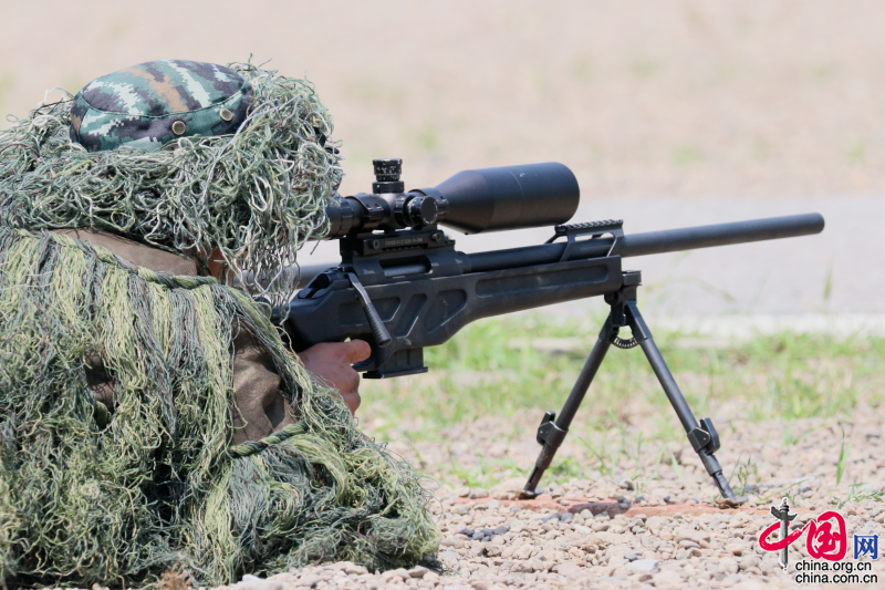 6月18日,武警猎鹰突击队狙击手进行实弹射击演示。中国网记者 吴亮 摄