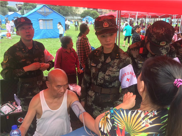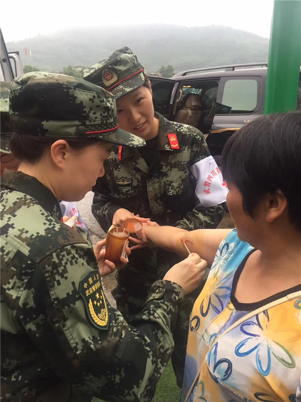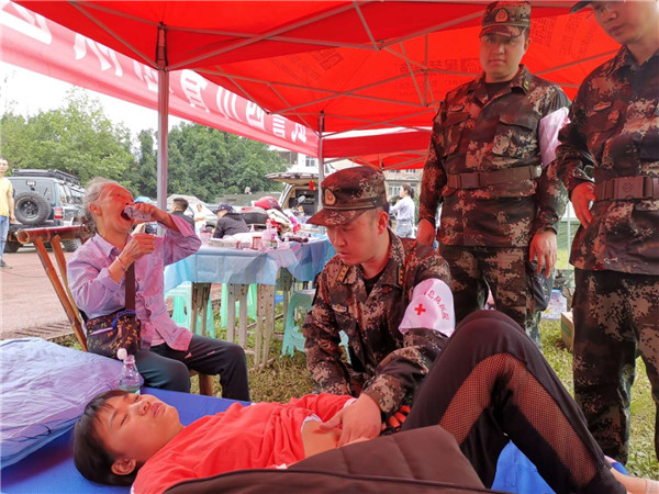 四川长宁地震发生后,武警四川总队医院立即启动应急救援预案,第一时间组建医疗队赶赴灾区。医疗队18日上午就地开设医疗救治点,为伤员进行伤口清洗,骨折复位,内伤检查等应急处理,确保附近伤员最短时间内得到有效救治;对危伤重人员,及时采取措施进行后送。(薛栋、李华时摄影报道)