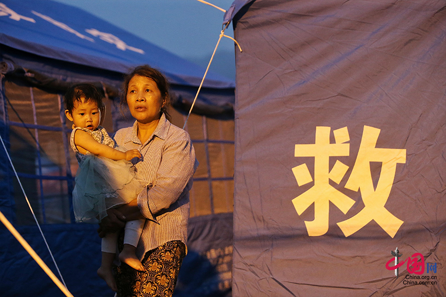 2019年6月18日下午6时许,位于双河中学校操场的灾民安置点秩序井然。这里的灾民被妥善安置,安置点除了提供帐篷饮食等灾民的基本需求外,还提供移动充电宝等,同时还设有露天电影院。(图/IC photo)