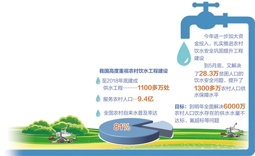 为推进农村饮水安全巩固提升工程建设,今年以来,水利部对任务较重省份制定专项工作方案,进一步加大资金投入。今年1月份至5月份又解决了28.3万贫困人口饮水安全问题,提升了1300多万农村人口供水保障水平。