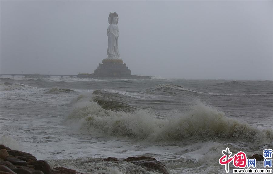 台风"木恩"登陆海南 三亚海上掀起大浪