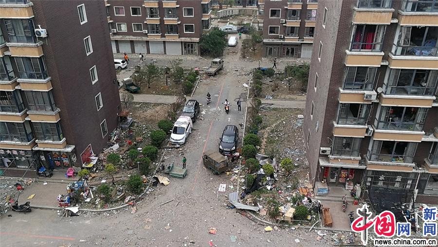2019年7月4日,辽宁开原,航拍龙卷风过后受灾的小区楼房。图/视觉中国