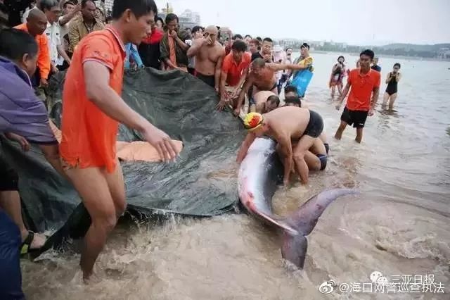 17日中午,@海口网警巡查执法紧急辟谣:真相是,一只受伤的鲸鱼在三亚大东海搁浅,三亚海洋与渔业局联合多部门对该鲸鱼进行救治,目前已运送到救助基地。