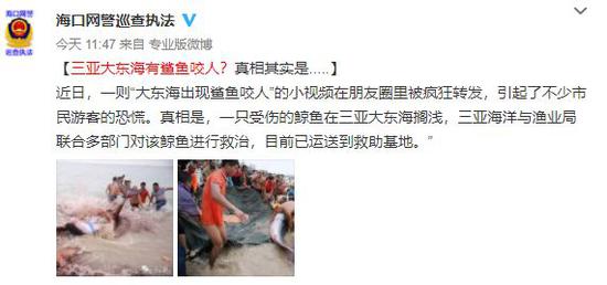原标题:三亚大东海有鲨鱼咬人?还有视频?海口网警巡查执法紧急辟谣。