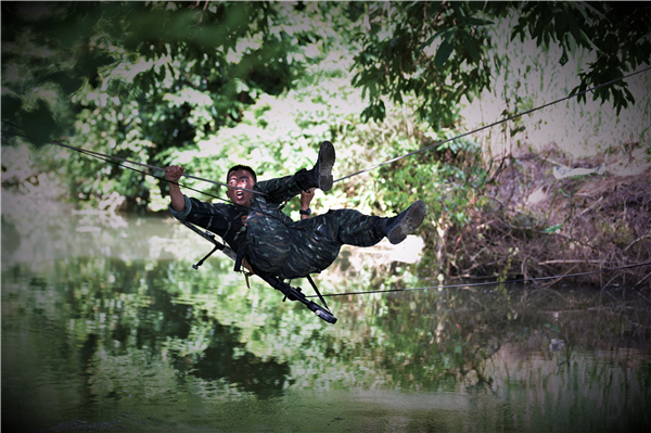 一名队员在进行牵引横渡。余海洋 摄