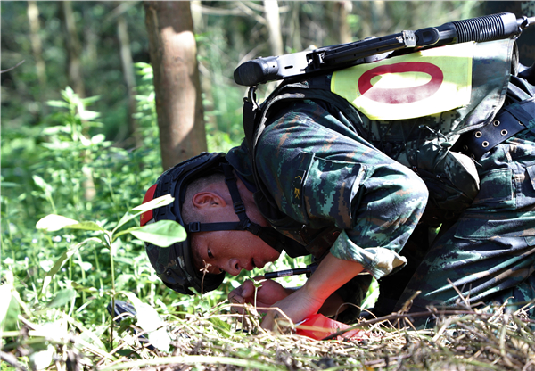 一名排爆手正在排除“爆炸物”。许东 摄