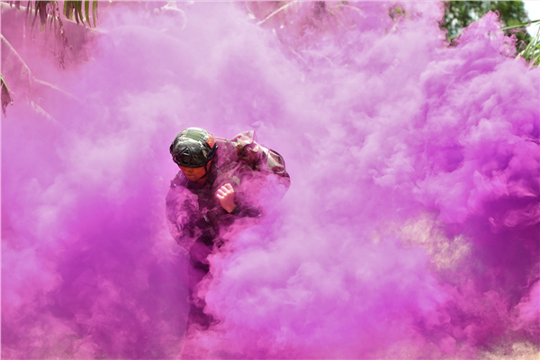 一名队员穿越“毒障”。许东 摄