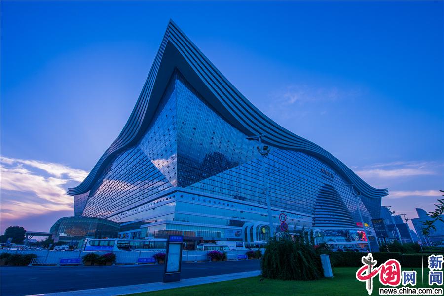 成都雨后天晴惊现美丽日落景象,全球最大单体建筑——环球中心披上了一层金黄色的外衣。IC photo/摄
