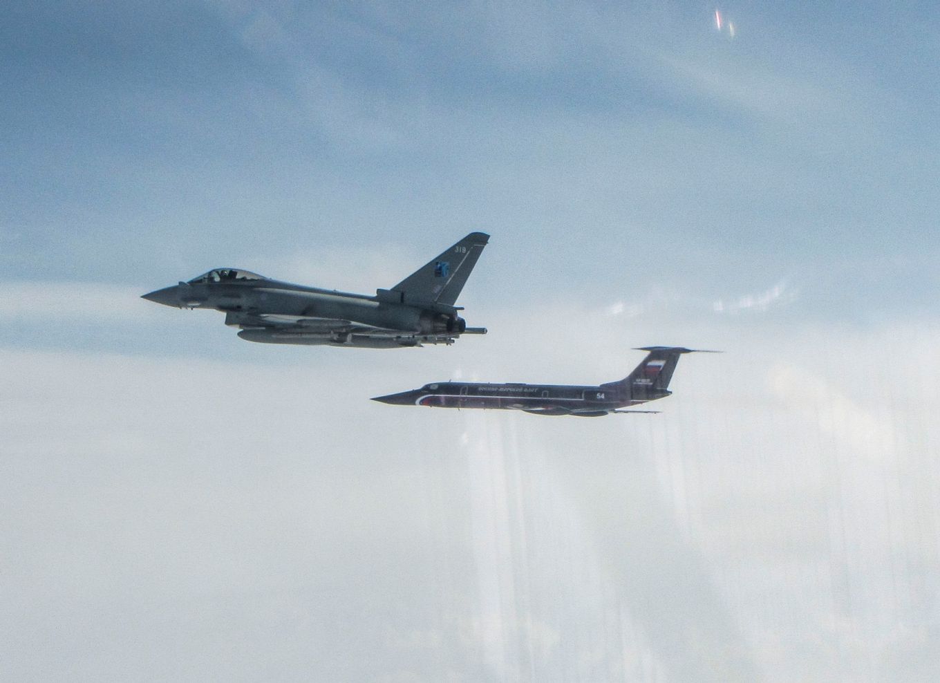 英国空军“台风”战斗机与俄罗斯图-134飞机。