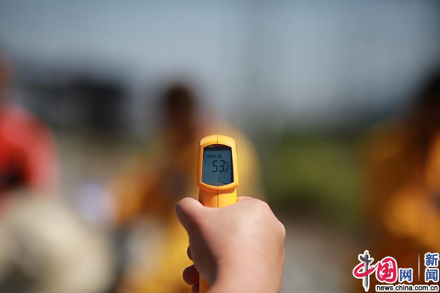 上午十时,钢轨温度已达到53摄氏度。中国网发 苏志刚/摄