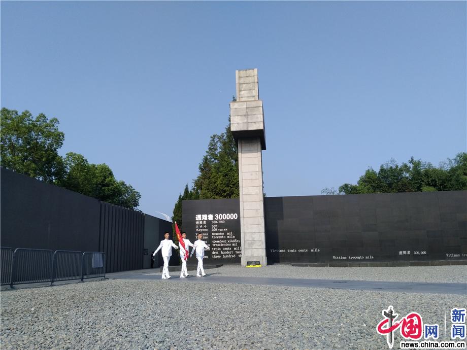 2019年8月15日,江苏省南京市,当日上午8时,侵华日军南京大屠杀遇难同胞纪念馆举行庄严的升旗仪式,纪念中国人民抗日战争暨世界反法西斯战争胜利74周年,悼念30万南京大屠杀遇难同胞,南京各界人士代表等近百人参加。IC photo