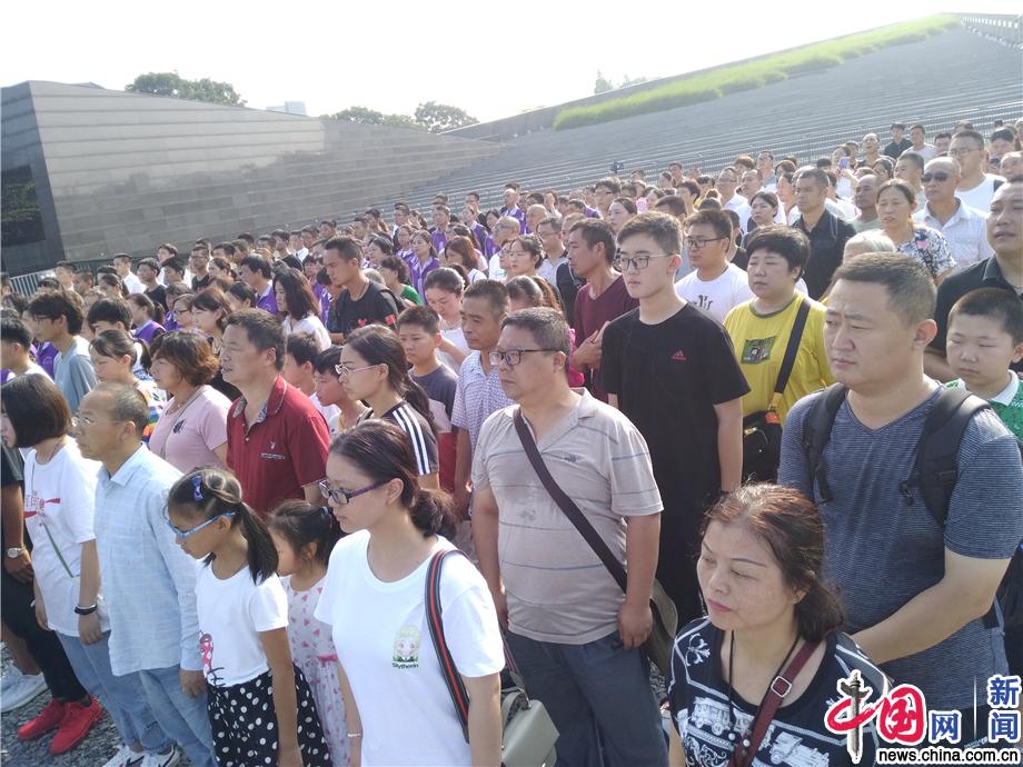 2019年8月15日,江苏省南京市,当日上午8时,侵华日军南京大屠杀遇难同胞纪念馆举行庄严的升旗仪式,纪念中国人民抗日战争暨世界反法西斯战争胜利74周年,悼念30万南京大屠杀遇难同胞,南京各界人士代表等近百人参加。IC photo
